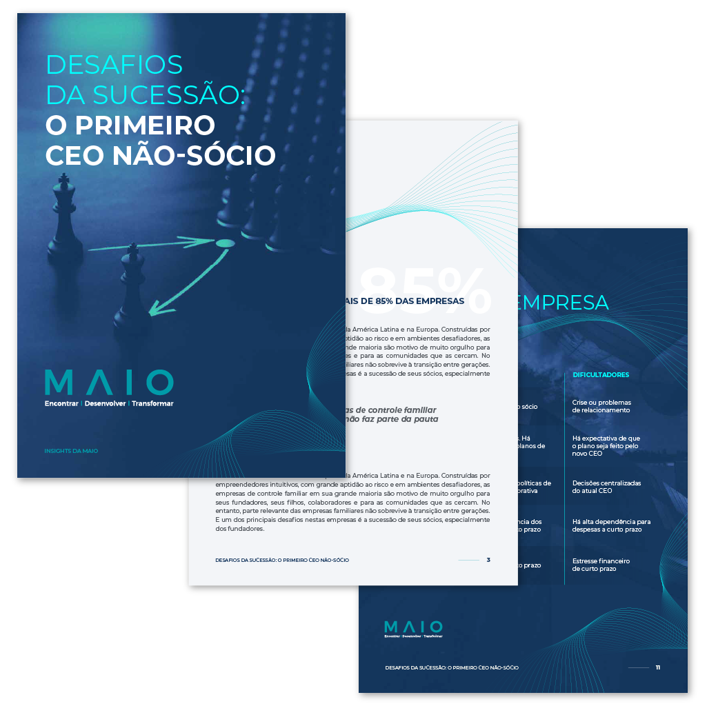 Este estudo da MAIO aborda a complexidade da sucessão de CEOs em empresas familiares, destacando a construção de confiança e a integração respeitosa como elementos chave. O material combina décadas de experiência dos fundadores com estudos de caso reais, oferecendo uma perspectiva profunda sobre como gerenciar transições delicadas e sustentar o legado empresarial.